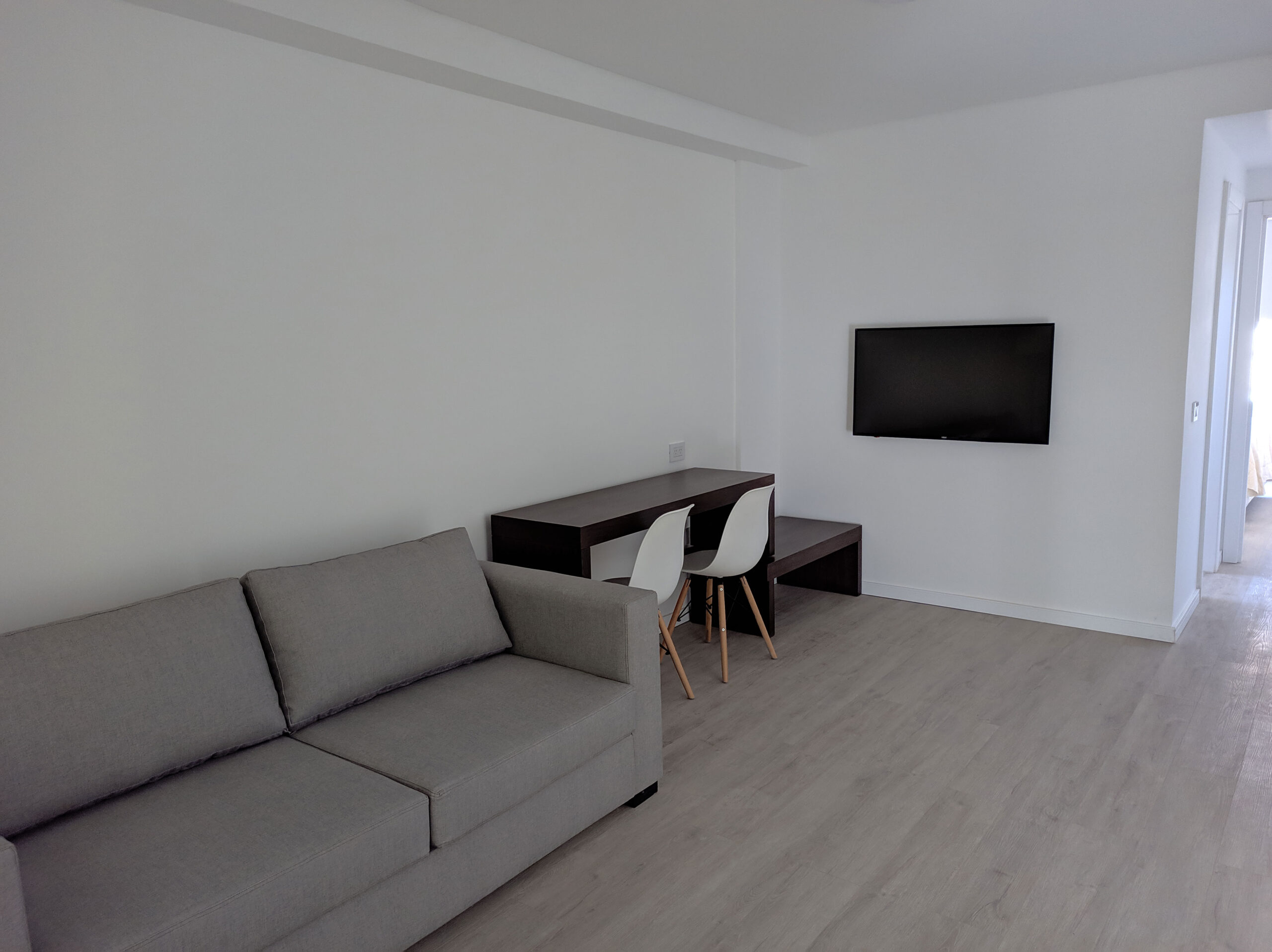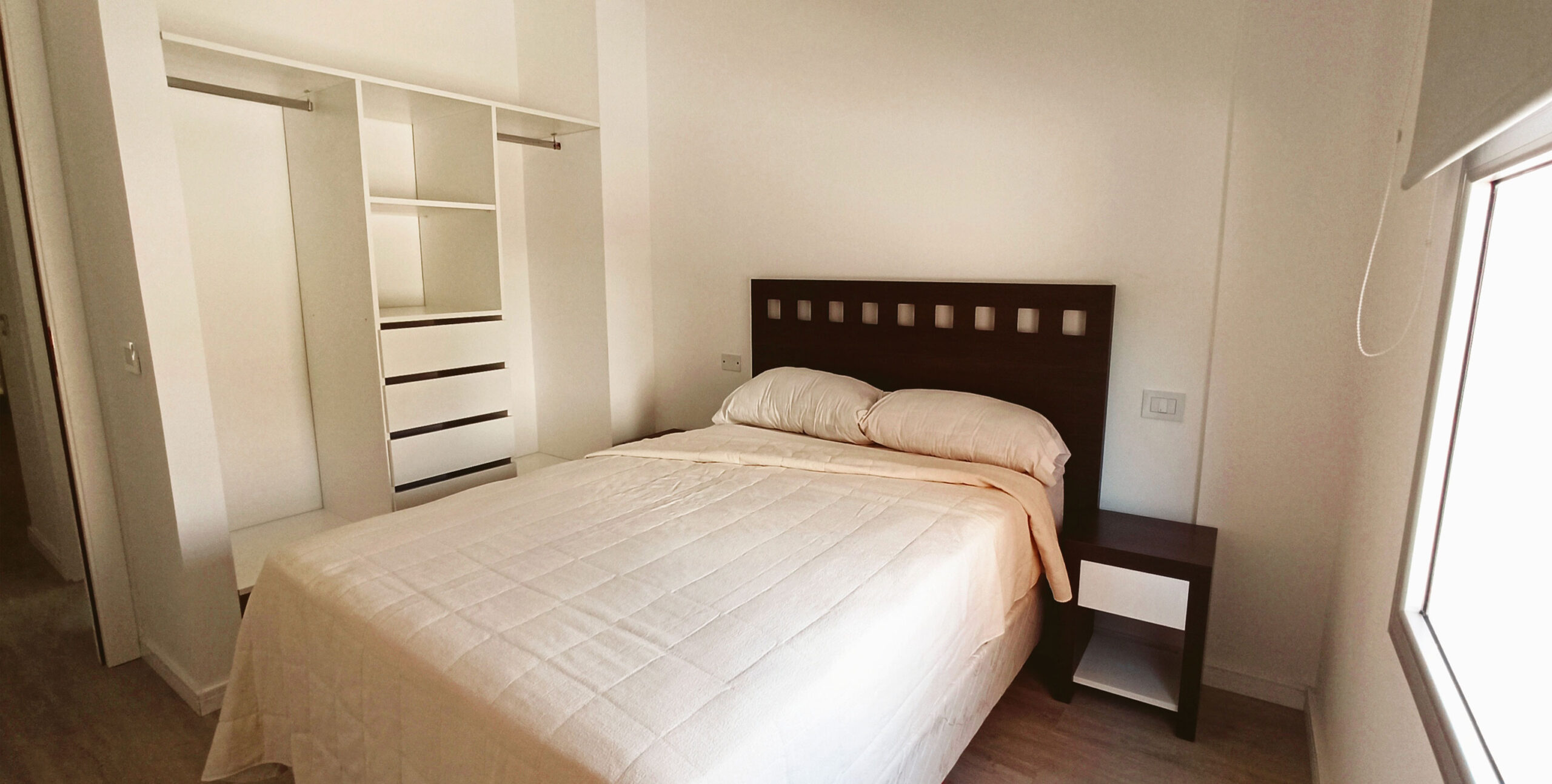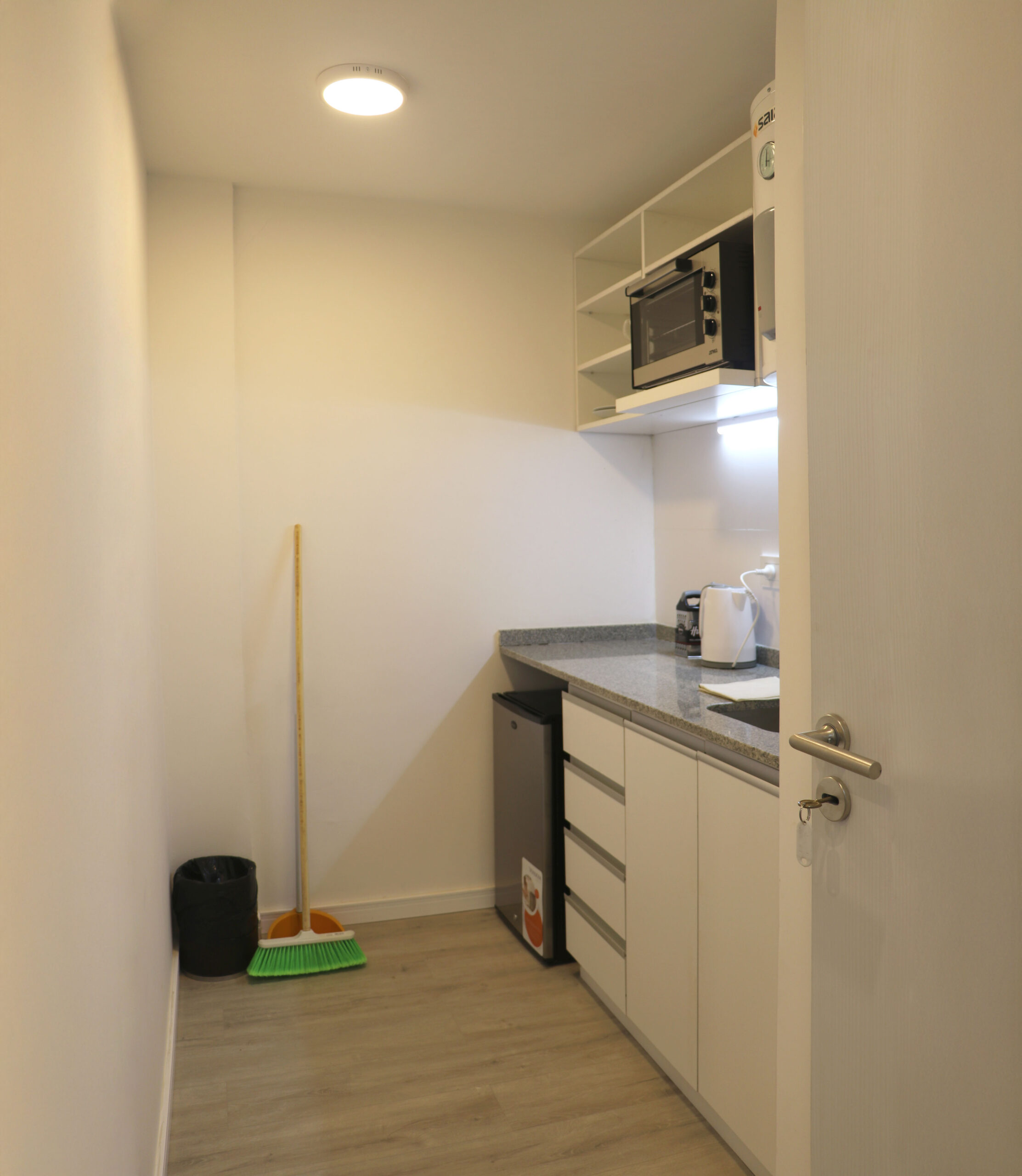 Cuenta con una habitación-estudio, kitchenette integrada, baño completo y un amplio balcón. La habitación-estudio; incluye 1 sommier de 1