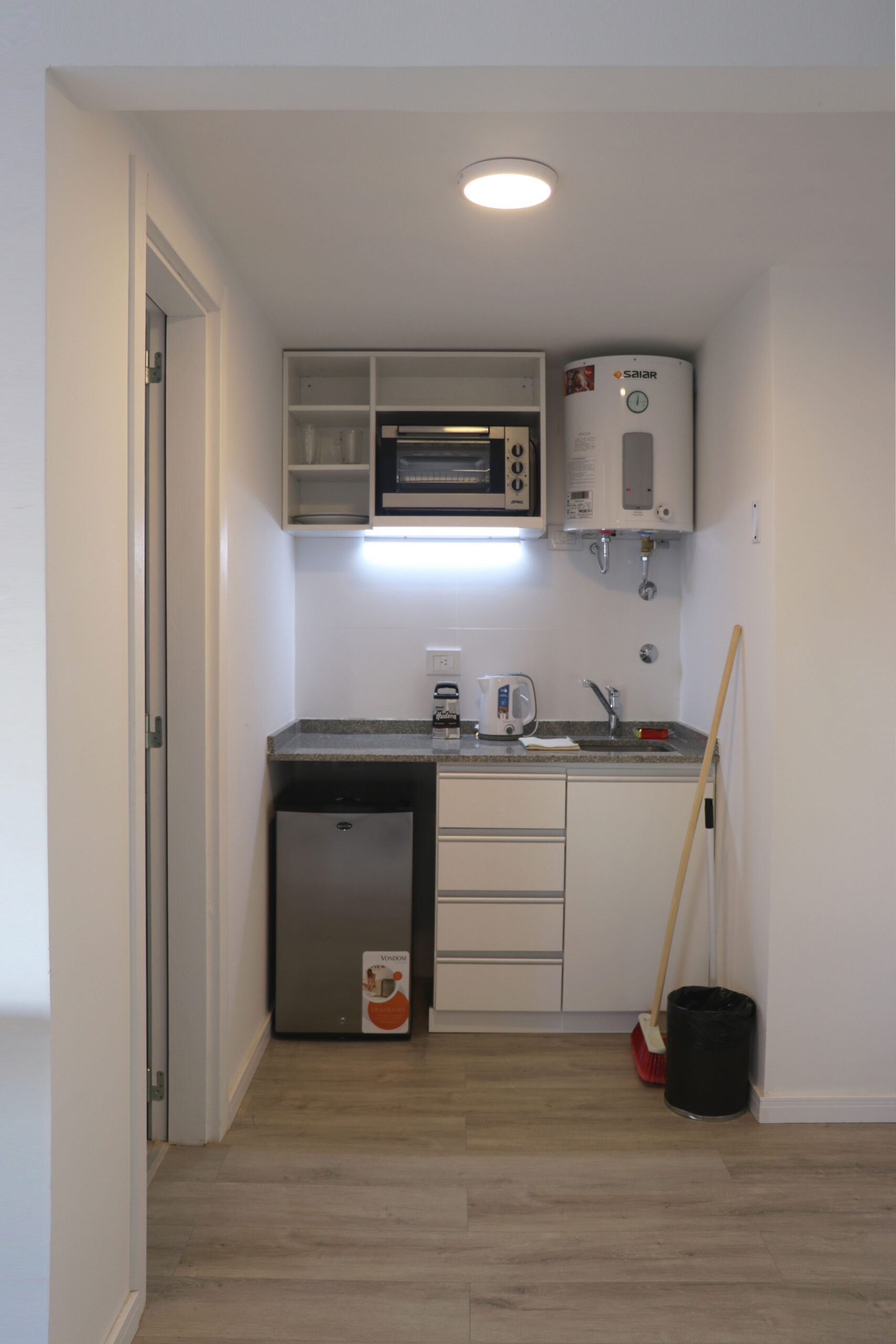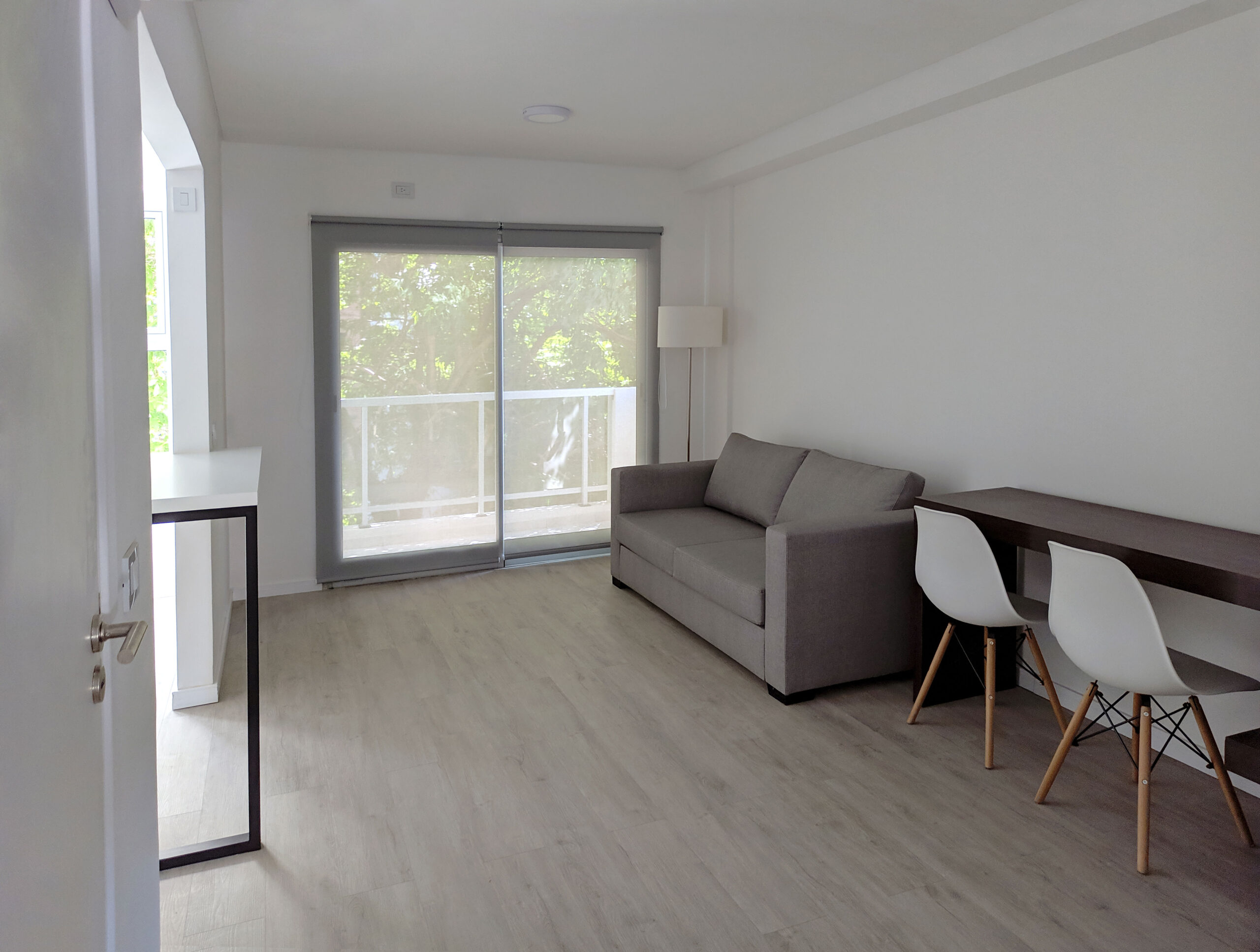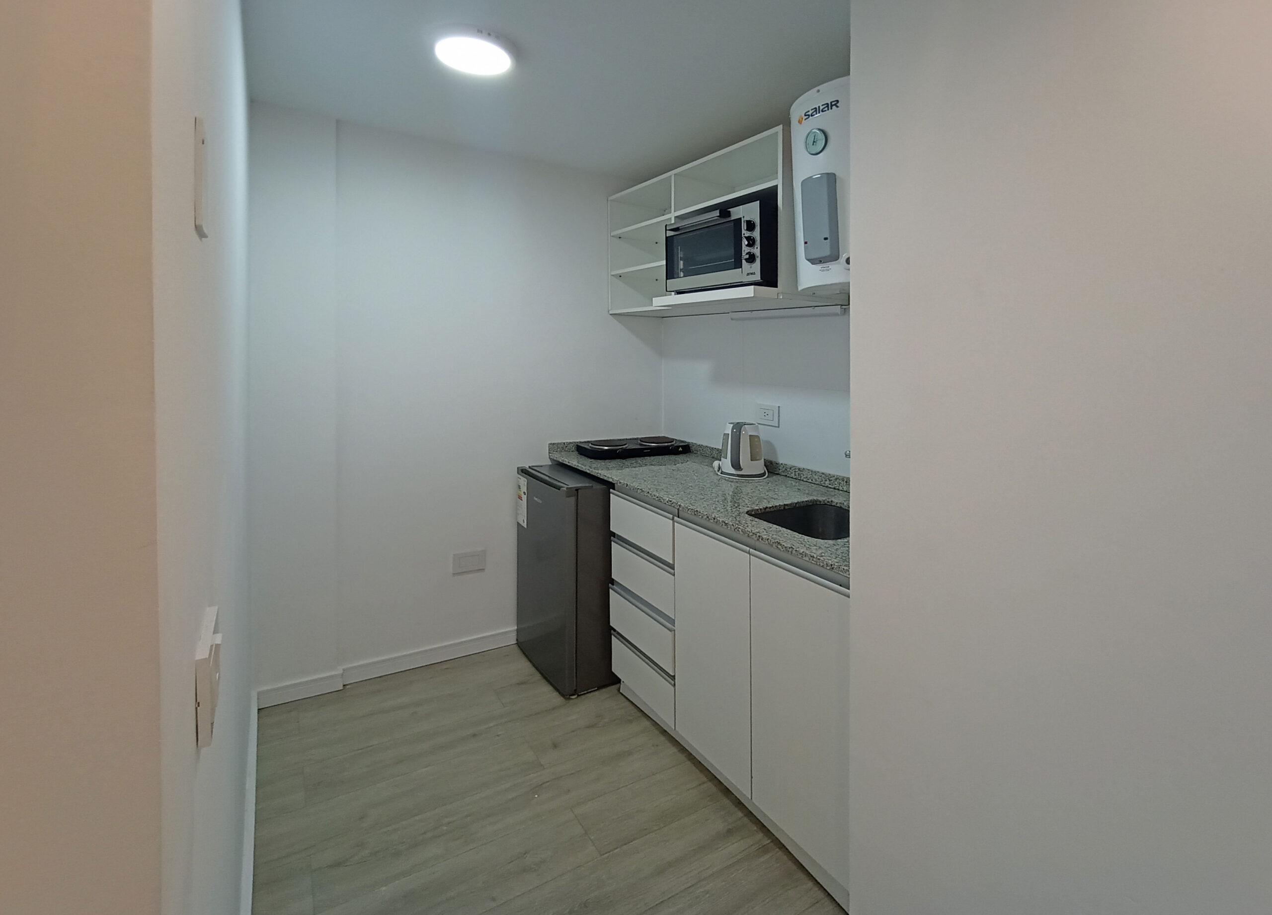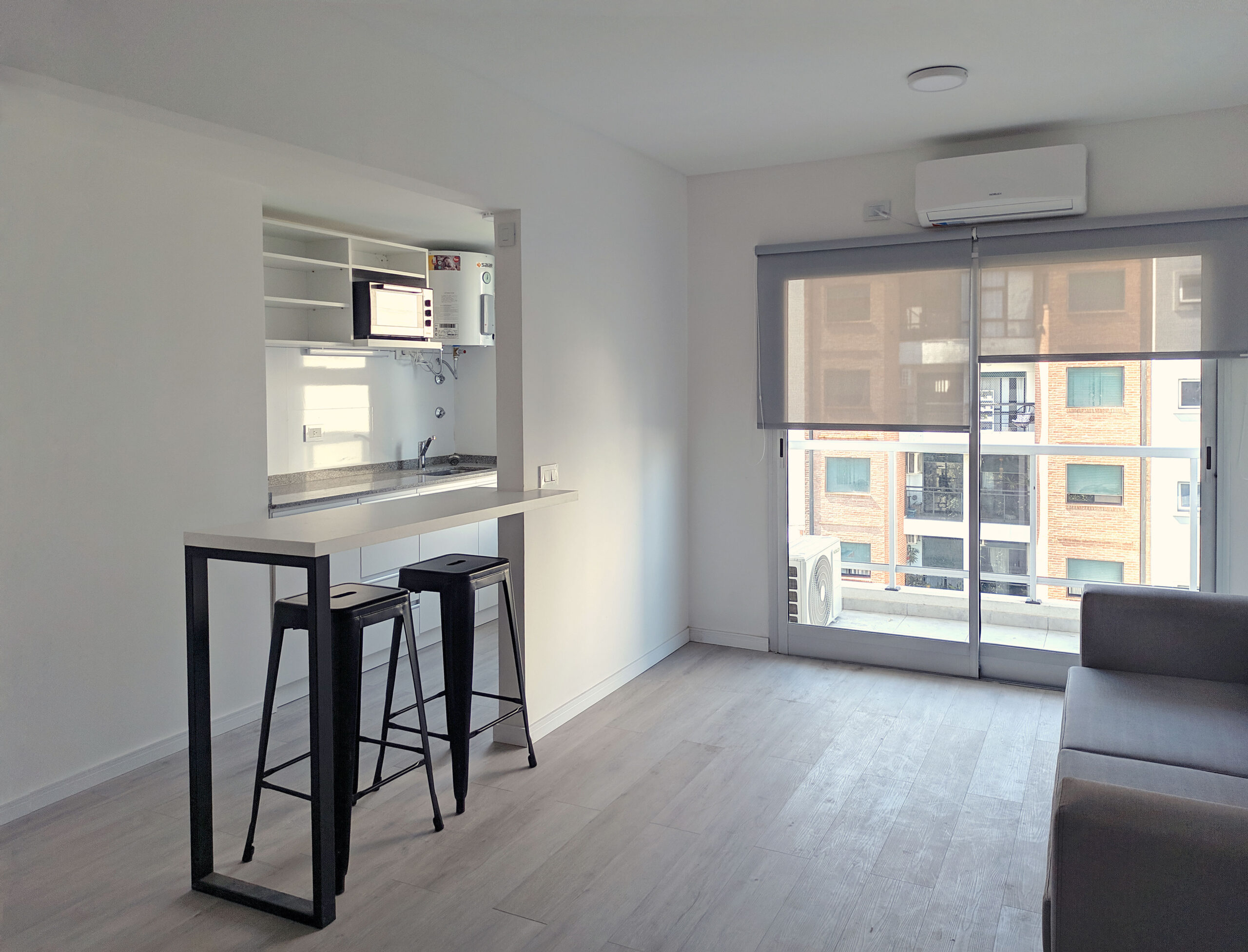 Cuenta con un amplio living/sala de estar, espacio de estudio/trabajo con balcon a contrafrente; cocina y baño completos. Habitación
